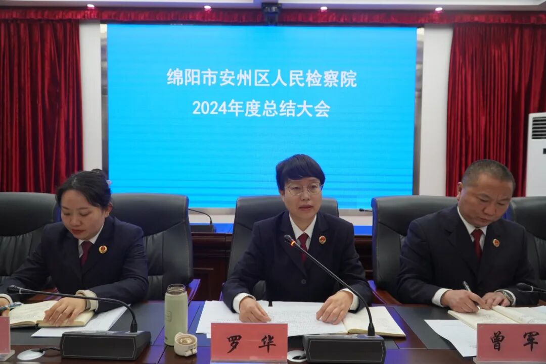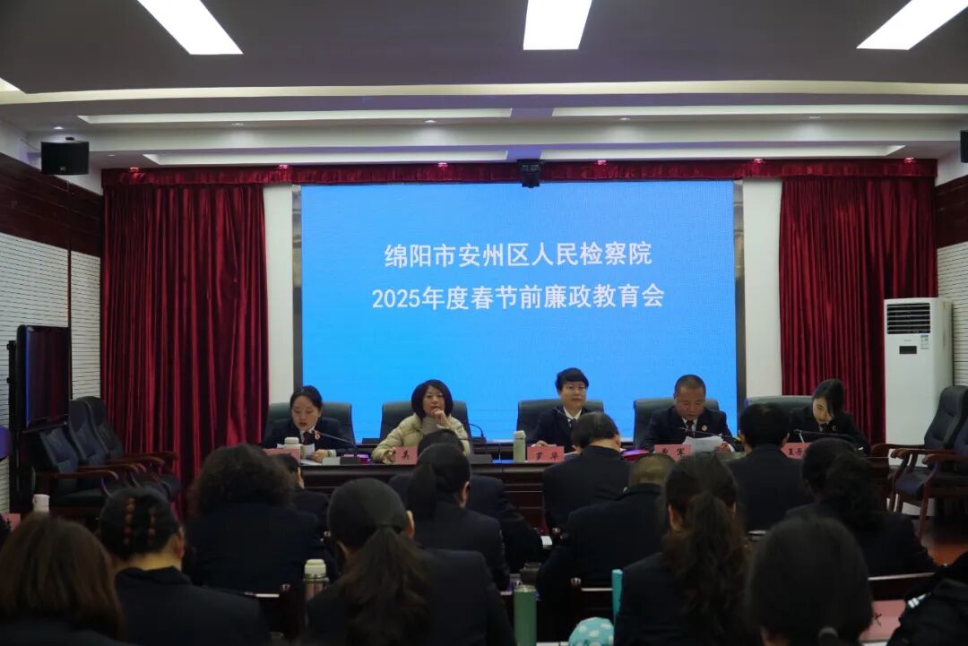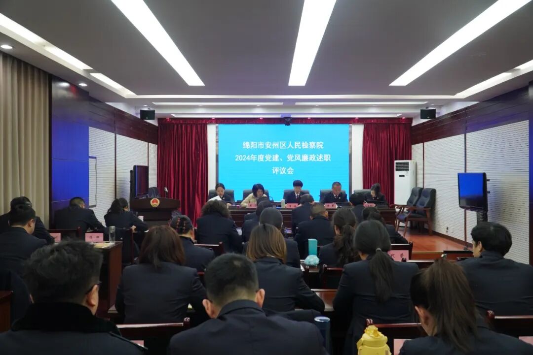 为凝心聚力,推动新一年各项检察工作有序开展,1月23日下午,安州区检察院召开党建、党风廉政建设述职评议暨春节前廉政教育会,总结2024年度工作,并对2025年检察工作进行部署。会议由院党组副书记、副检察长曾军主持,区纪委监委驻区委政法委纪检监察组吴俊同志出席会议,区检察院全体检察干警参加会议。 会上,党组书记、检察长罗华通报了院党组班子2024年度党建、党风廉政建设工作情况。 班子成员以及部门负责人代表立足岗位工作实际,结合自身履职情况对本部门及个人年度工作进行了系统总结梳理,依次进行述责述廉。 会议组织学习了中央纪委国家监委公开通报十起违反中央八项规定精神典型问题。用“案中人”警醒“身边人”,教育干警春节期间严格遵守廉洁自律相关规定,自觉抵制奢靡之风,始终紧绷廉洁这根弦,防微杜渐,筑牢廉洁自律“防火墙”。 党组书记、检察长罗华对过去一年全院干警团结协作、拼搏奋进,各项工作取得的成绩给予充分肯定,对2025年工作进行了具体部署安排。她要求,一是讲政治,持续强化政治建设,主动将检察履职放在大局中谋划思考,坚持党建与业务深度融合,依托“党建+”工作品牌,以高质量党建促进检察工作高质量发展。二是提质效,聚焦主责主业,着力做好典型案例培育、优秀文章撰写、品牌创建等各项检察工作,以“三个善于”做实高质效办好每一个案件。三是抓队伍,树立正确用人导向,坚持激励与约束并重,有意识地将优秀年轻干部、优秀人才放在吃劲岗位或急难险重的任务中磨练,努力锻造高水平检察队伍。四是强纪律,坚持“严管就是厚爱”的主基调,坚决扛起从严治检主体责任,加大重点岗位、关键环节监督检查力度,以更高要求、更严标准执行“三个规定”“十个严禁”等铁规禁令。