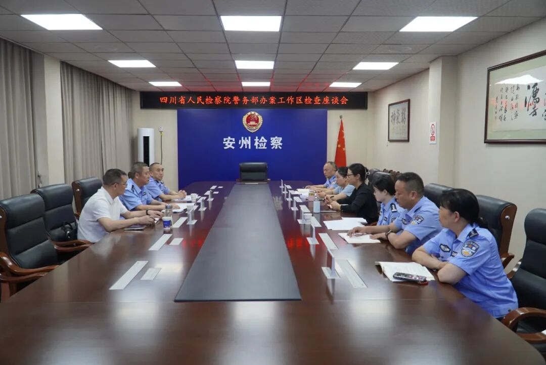 6月18日,省检察院警务部主任邱波一行到安州区检察院调研司法警察工作,绵阳市人民检察院党组成员、副检察长薛真勇陪同调研。安州区检察院党组书记、检察长苏燕对司法警察工作进行专题汇报。 调研组一行查看了安州区检察院办案工作区询问室、讯问室、值班监控室建设情况,了解办案工作区使用申请、登记、警用装备配置及突发事件应急处置预案等,对办案工作区规范化运行进行指导。 座谈会上,邱波主任肯定了安州区检察院司法警察工作,强调司法警察要牢固树立安全意识,筑牢“安全无小事”防线,确保检察办案“零隐患”“低风险”。落实司法警察“严管+厚爱”培养要求,打通职级晋升路径,充分调动司法警察干事创业的积极性与主动性,为检察办案保驾护航。
