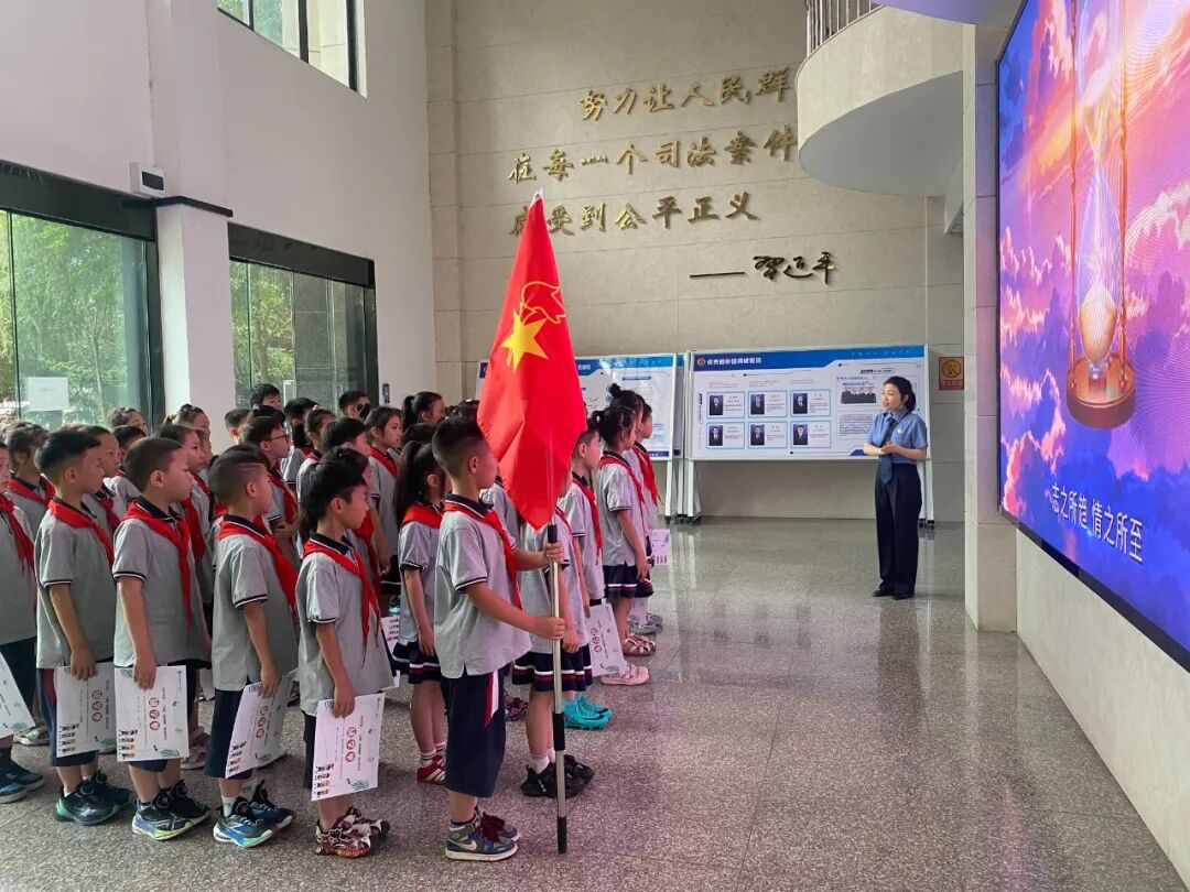 6月20日,在期末乐考季来临之际,安州区检察院发挥法治副校长桥梁纽带作用,组织七一实验小学100余名学生走进检察办公区,开展了一场别开生面的“法治研学之旅”。 在检察官法治副校长的带领下,学生们有序参观了办公楼大厅、12309检察服务中心和检察听证室。检察官用通俗易懂的语言,深入浅出地讲解检察机关“惩恶扬善、守护公正”的职责使命,让孩子们对检察工作有了直观认识。 走进检察办案区,规范化的办案流程、庄严肃穆的环境布置,无声传递着法律的威严,让“法不可违”的理念在孩子们心中悄然生根。而检察干警“笑脸墙”上那一张张温暖的笑脸,又让孩子们真切感受到法律守护者亲切和蔼的一面,深刻体会到法律不仅是惩处的标尺,更是守护成长的坚实后盾。 针对低年级学生的认知特点,活动精心设计了一系列趣味法治课堂。检察官化身“法治故事大王”,选取校园安全、网络保护、防欺凌等贴近生活的典型案例,以生动形象的讲述引导孩子们展开热烈讨论,在思考辨析中明晰行为边界。 法治主题动画短片将抽象的法律条文转化为鲜活的画面,让孩子们在欢声笑语中轻松掌握法律知识。在未成年人检察概念歌曲《携长风予你》的优美旋律中,孩子们潜移默化地了解了“未检”职能。 此次“乐考+实践”研学活动,是安州区检察院深化未成年人法治教育的创新实践。通过让孩子们从“听说检察院”到“走进检察院”,不仅建立了对司法机关的信任与认同,更在他们心中播下了法治的种子,激发了从小遵纪守法的自觉意识。 这种寓教于乐的普法形式,有效提升了孩子们的参与热情和学习效果,让法律知识和自护技能真正入脑入心。下一步,安州区检察院将继续以法治副校长工作为重要抓手,不断创新形式,开展更多适合不同年龄段的检察开放日、模拟听证、法治情景剧等互动活动,用心用情护航未成年人健康成长,助力他们成长为担当民族复兴大任的时代新人。