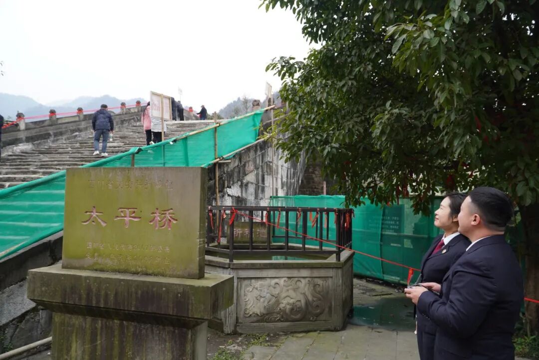 2023年初,安州区政协委员在区政协会上提出了太平桥、天缘桥的文物保护问题:上万游客年复一年的香火祈福,让青石桥栏蒙上烟熏痕迹,无序祭拜更埋下消防隐患。安州区检察院了解到这一情况后,依托与人大、政协建立的《代表建议、委员提案与公益诉讼检察建议衔接双向转化工作办法》,及时进行案件转化,成立文物保护公益诉讼专案组,邀请政协委员一同进行实地调查。 传统人工勘验存在勘验死角,容易造成漏测、误测等情况,启用无人机360度扫描古桥,为古桥的保护提供了更加全面、准确的数据支持。 办案组多次到市级文物管理部门走访调研,邀请文物、林业等领域的专家进行会商座谈,委托专家对文物保护现场进行实地勘验、鉴别,提出文物保护的意见。 2023年5月,安州区检察院组织召开公开听证会,邀请主管部门和属地乡镇政府参加,并邀请提案的政协委员以及部分人大代表、人民监督员等担任听证员,最终,这场特别的检察听证会以检察建议凝聚了守护共识: 对省级和市级文物保护单位作出标志说明,明确辖区不可移动文物安全直接责任人和安全员; 加强文物安全日常检查,对辖区文物的周边环境定期进行清理,及时消除潜在的消防安全等隐患; 检察机关结合听证评议意见,依法向主管部门和属地乡镇政府发出公益诉讼诉前检察建议; 提高全民文物保护意识,引导鼓励社会力量参与文物保护。 检察干警在“踩桥”前进行“回头看”,向工作人员了解情况 “检察建议不能一发了之。”区检察院聘请政协委员担任“特邀检察官助理”,与办案组一起对整改情况进行协同监督,在之后的几个月时间里,办案组与政协委员多次对整改情况进行监督,并回访主管部门和属地乡镇政府。 整改后的太平桥畔,专门焚香区、文物公告牌、应急通道一应俱全。 “以公益诉讼履职促进文物保护,不仅有利于保护太平桥这一历史文物,更有利于传承作为非物质文化遗产的春社踩桥这一民俗文化活动。”工作人员向安州区检察院公益诉讼检察官为了保护文物、民俗文化等非物质文化遗产付出的努力表示感谢。 “我每年都来踩桥,体验越来越好了”游客点赞的不仅是更佳的体验,还是: