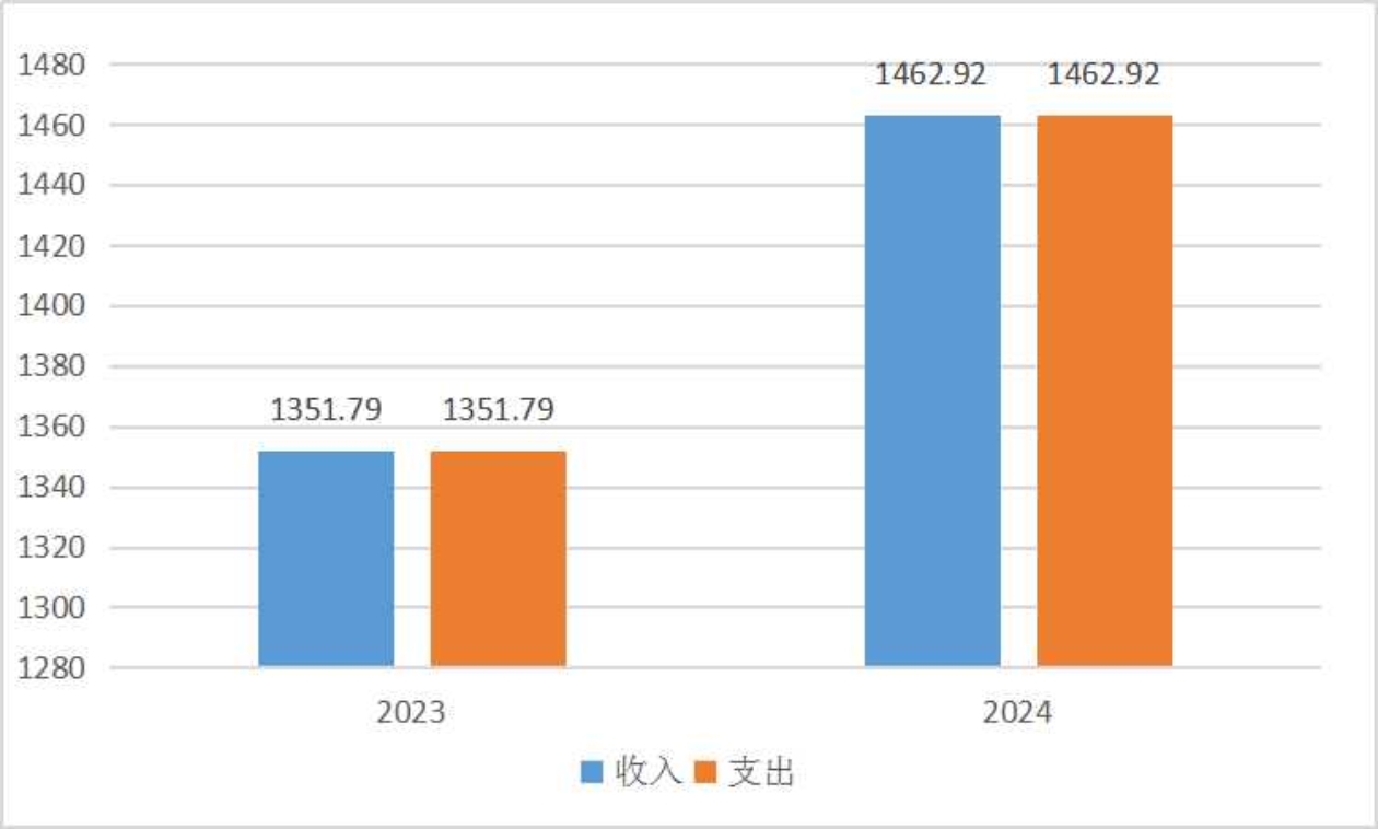 2024年度收、支总计1462.92万元。与2023年相比,收、支总计各增加111.13万元,增长8.22%。主要变动原因是人员变动和非本级财政拨款增加(安州区财政拨款)。